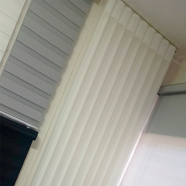 Deslizamiento suave: Gracias a su sistema de riel, estas cortinas se mueven con facilidad, lo que las hace ideales para grandes ventanales o espacios de acceso frecuente. Las tenemos con opción manual y motorizadas.